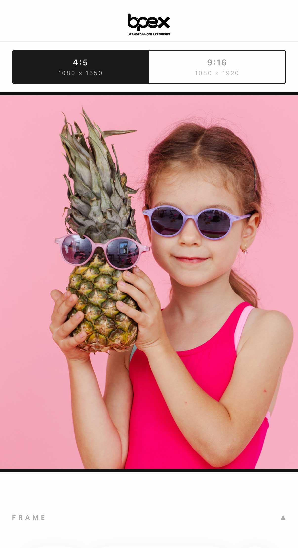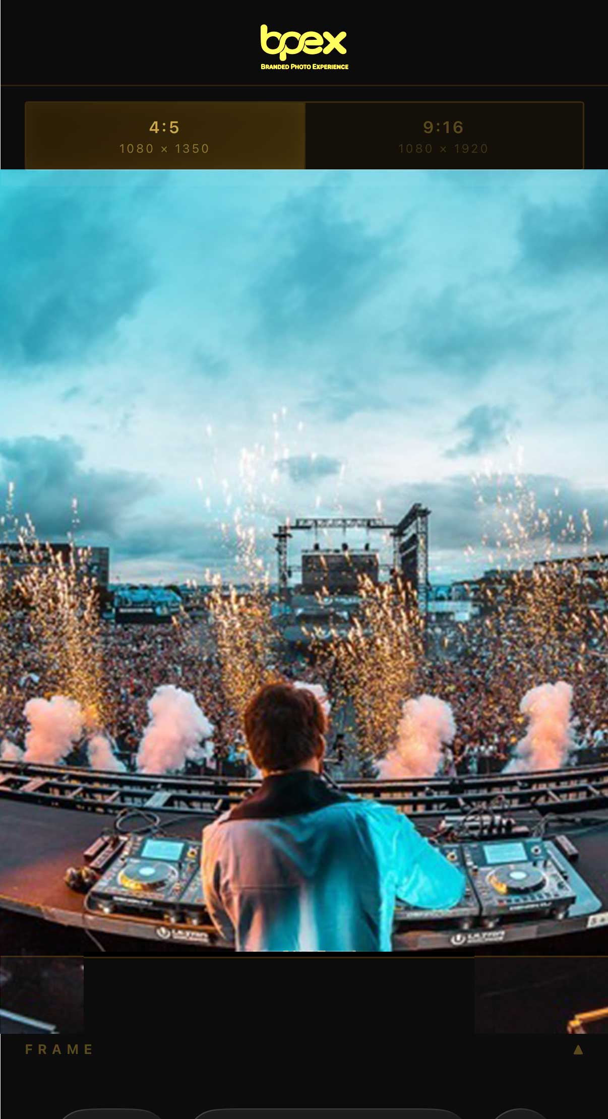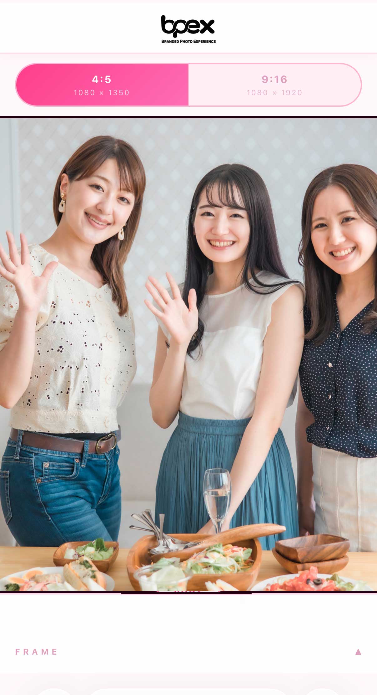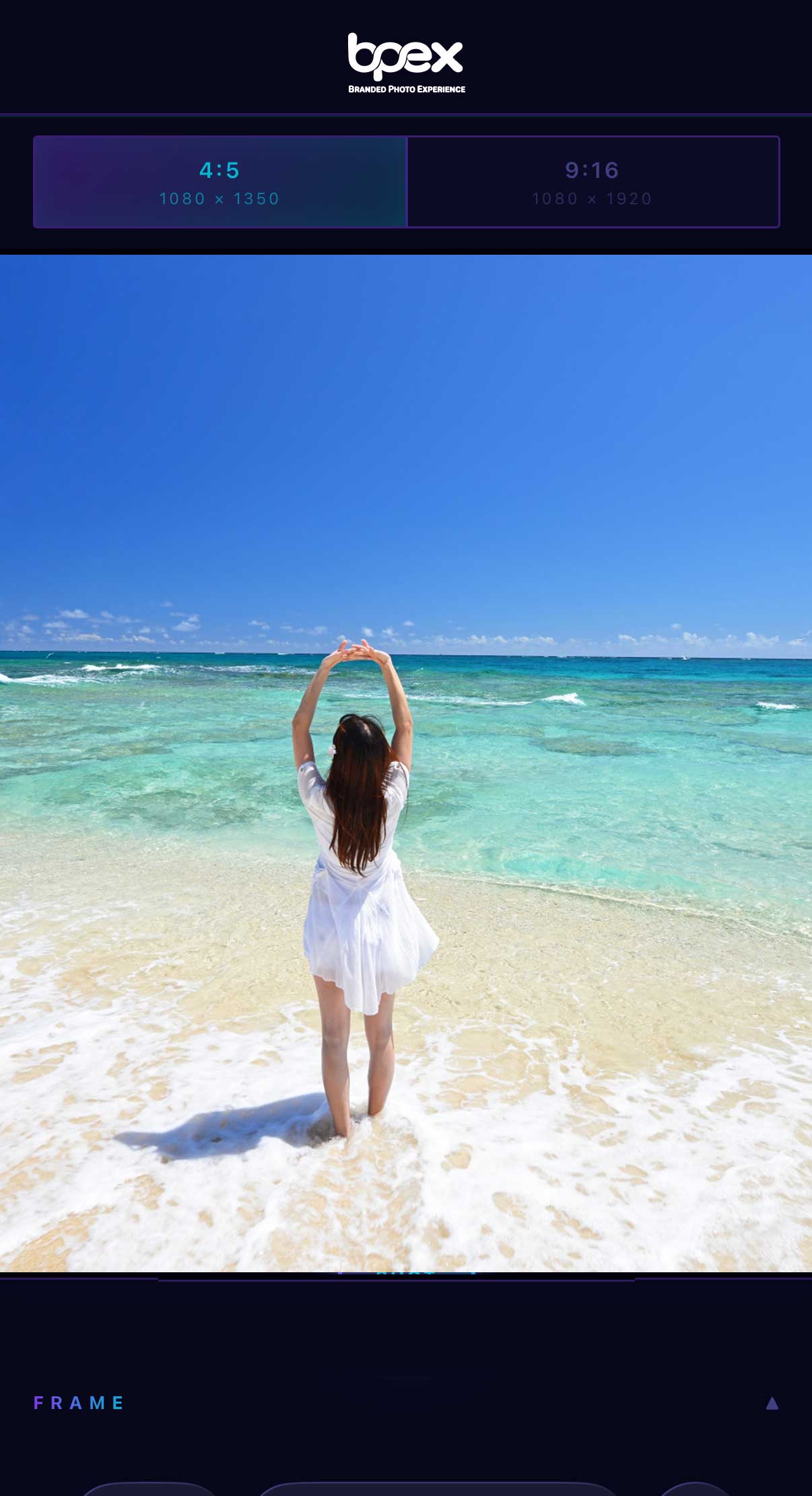 ロゴ・カラー・メッセージを組み込んだオリジナルフレームを生成。イベントの写真1枚1枚がブランド露出の機会になります。